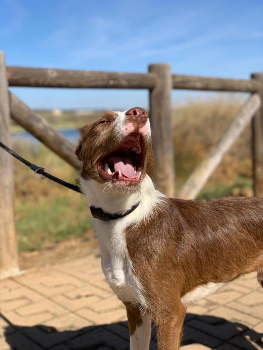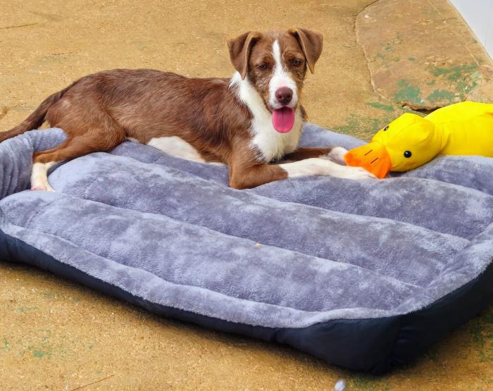 Aún es un cachorro y, aunque tiene un pequeño problema hepático que está controlado, necesita un hogar tranquilo donde pueda recuperarse mejor, el único tratamiento es medicación. En el refugio pasa demasiado tiempo solo, y sabemos que en una casa, con más cariño y atención, su salud y su ánimo mejorarían muchísimo.